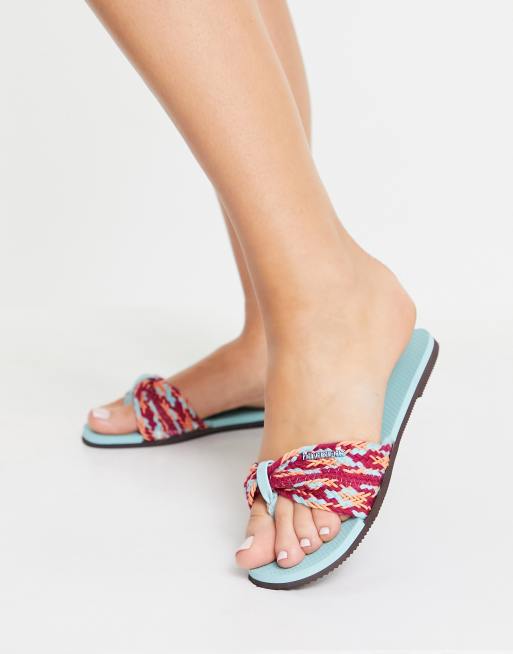 Havaianas Saint Tropez printed flat slides in sky blue ASOS