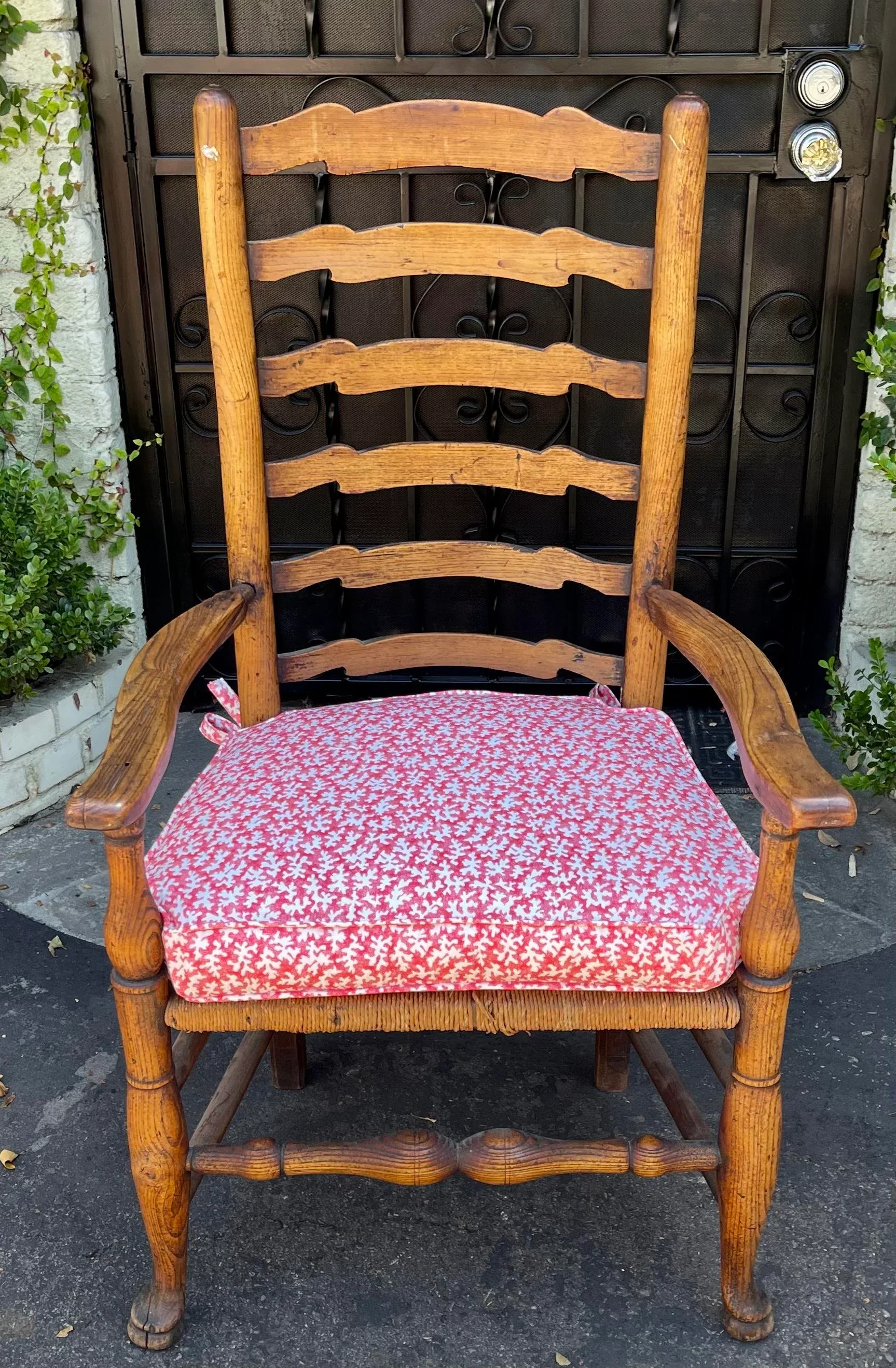 Ladder back chairs hot sale with cushion seats, Antique 18th C American Ladder Back Arm Chair Pink Scalamandre Cushion hot sale