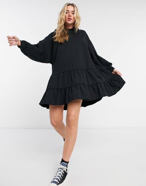 ASOS DESIGN tiered hoodie sweatshirt dress in black