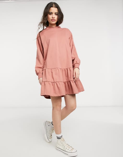 ASOS DESIGN tiered hoodie sweatshirt dress in rose